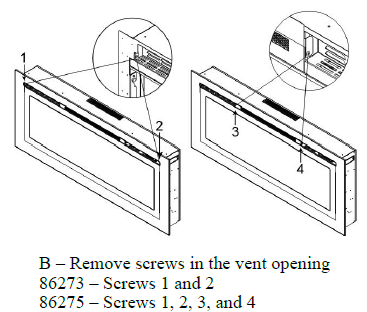 - There are 2 screws on the left side and 2 screws on the right side of the fireplace (see below).