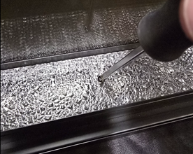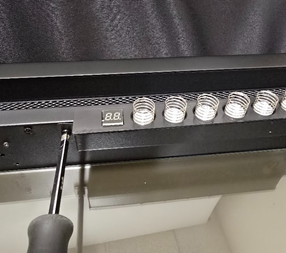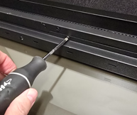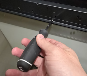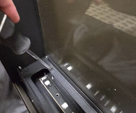 1. Unscrew two screws securing the glass panel (one on each side).