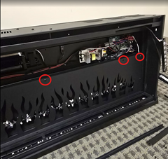 8. If you open the display panel and remove it, you will see the control board all the parts of the fireplace are connected to. Now, unscrew all screws holding the flame panel in place.