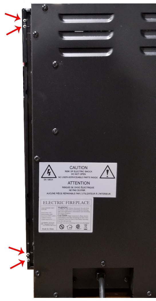 3. Looking at the fireplace from the back, remove the 4 screws holding the trim pieces in place on the left side of the fireplace.