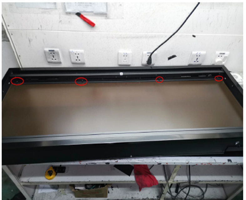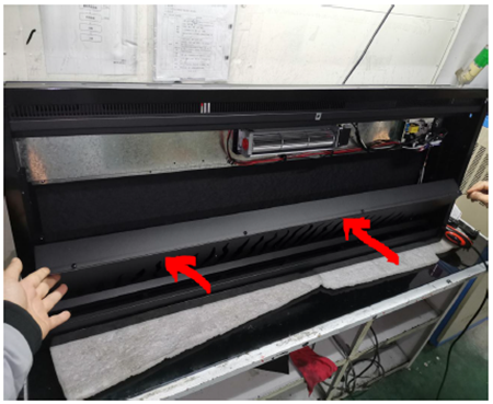 4. Remove the 4 screws holding the bar at the top of the flame display board.